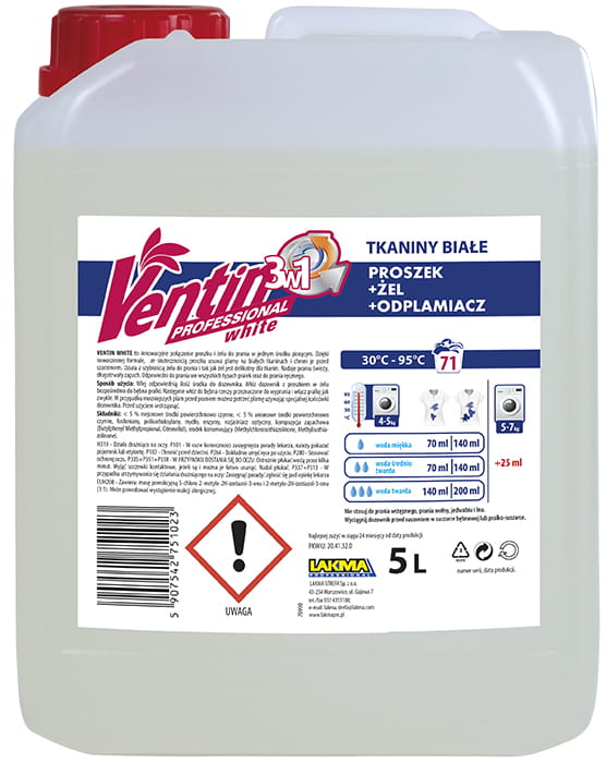 Dzięki nowoczesnej formule, ze skutecznością proszku usuwa plamy z białych tkanin chroniąc je równocześnie przed szarzeniem. Odpowiedni do prania we wszystkich typach pralek oraz do prania ręcznego.