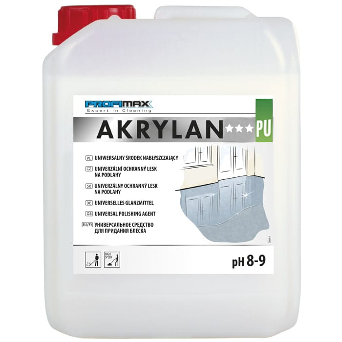 AKRYLAN PU – to bardzo odporna na ścieranie powłoka polimerowa z zawartością poliuretanu przeznaczona do konserwacji powierzchni narażonych na zniszczenia np.: PVC, linoleum, kamień naturalny i sztuczny. Tworzy powłokę o bardzo dużej twardości. Idealny do stosowania na powierzchniach o dużym natężeniu ruchu.