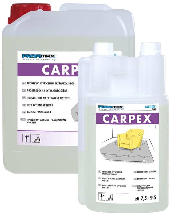 Ze względu na niską pienność doskonale nadaje się do stosowania w czyszczarkach mechanicznych. Po naniesieniu roztwór penetruje całą warstwę czyszczonej powierzchni, ekstrahując cząstki brudu i unosząc je z obszaru włókien do fazy roztworu. CARPEX przeznaczony jest przede wszystkim do czyszczenia za pomocą maszyn z odsysaniem brudnej cieczy (np. ekstraktor).