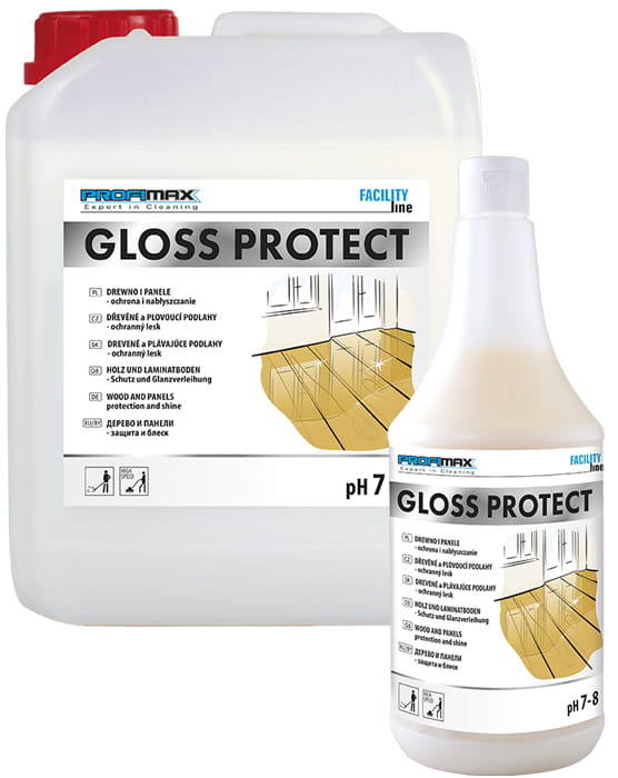 GLOSS PROTECT DREWNO i PANELE jest środkiem na bazie wysokiej jakości dyspersji polimerowej do konserwacji powierzchni narażonych na zniszczenia tj. podłóg drewnianych lakierowanych oraz laminowanych paneli podłogowych.