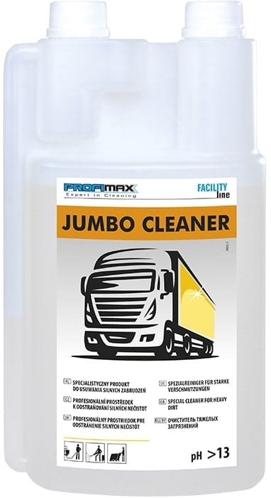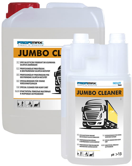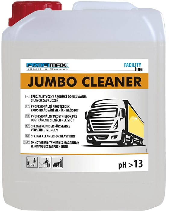 JUMBO CLEANER jest mieszanina alkaliów i związków powierzchniowo czynnych o bardzo silnym działaniu. Przeznaczony jest do szybkiego usuwania tłustych olejowo-smarowych zabrudzeń, śladów po gumie; do mycia karoserii, nadwozia oraz plandek samochodowych.