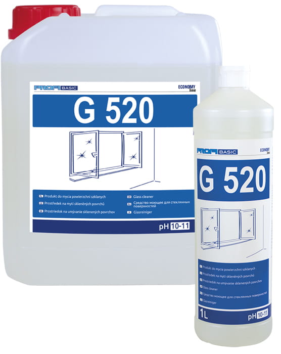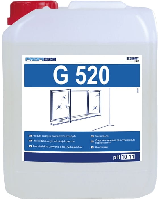 PROFIBASIC G 520 jest alkalicznym środkiem przeznaczonym do czyszczenia powierzchni szklanych (okna, szyby, lustra, szyby samochodowe) oraz wykonanych z tworzyw sztucznych.