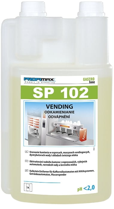 PROFIMAX SP 102 to kwaśny, skoncentrowany środek do usuwania osadów z mleka i osadów wapiennych. Do stosowania w automatycznych i ręcznych układach dozowania mleka, dyszach parowych oraz do czyszczenia układów mleka w automatycznych ekspresach i w maszynach vendingowych.