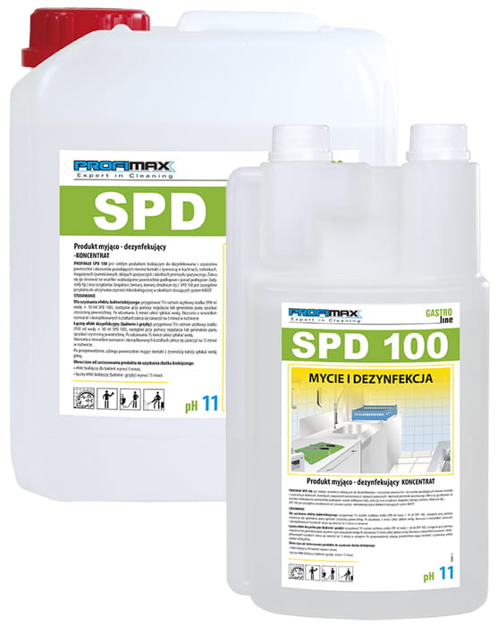 PROFIMAX SPD 100 jest skoncentrowanym, ciekłym środkiem biobójczym do mycia i dezynfekcji wodoodpornych powierzchni i akcesoriów, posiadających kontakt z żywnością. Zalecany do stosowania na powierzchnie podłogowe i ponadpodłogowe (lady, stoły itp.) oraz urządzenia (krajalnice, bemary, komory chłodnicze itp.).