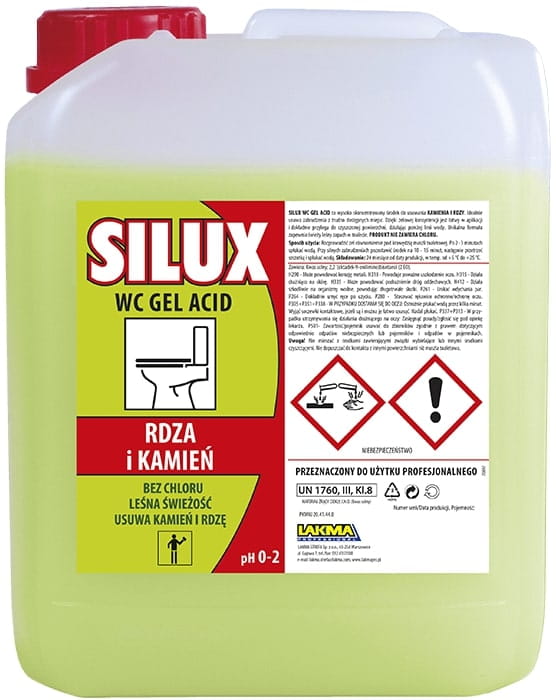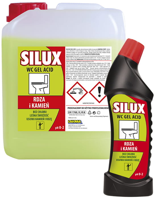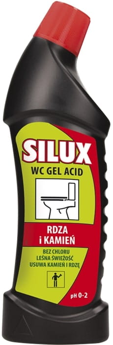 SILUX WC GEL ACID to wysoko skoncentrowany środek do usuwania kamienia i rdzy. Idealnie usuwa zabrudzenia z trudno dostępnych miejsc.