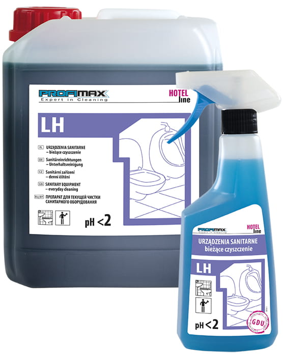PROFIMAX LH 1 preparat do czyszczenia muszli klozetowych i pisuarów oraz innych powierzchni w obrębie toalet. Skutecznie zapobiega osadzaniu się kamienia wapiennego.