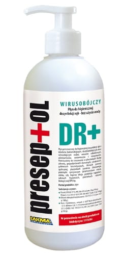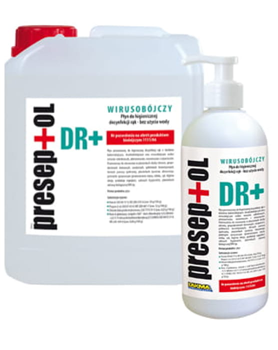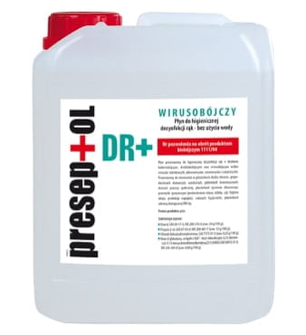 PRESEPTOL DR+ to płyn przeznaczony do higienicznej dezynfekcji rąk bez użycia wody.