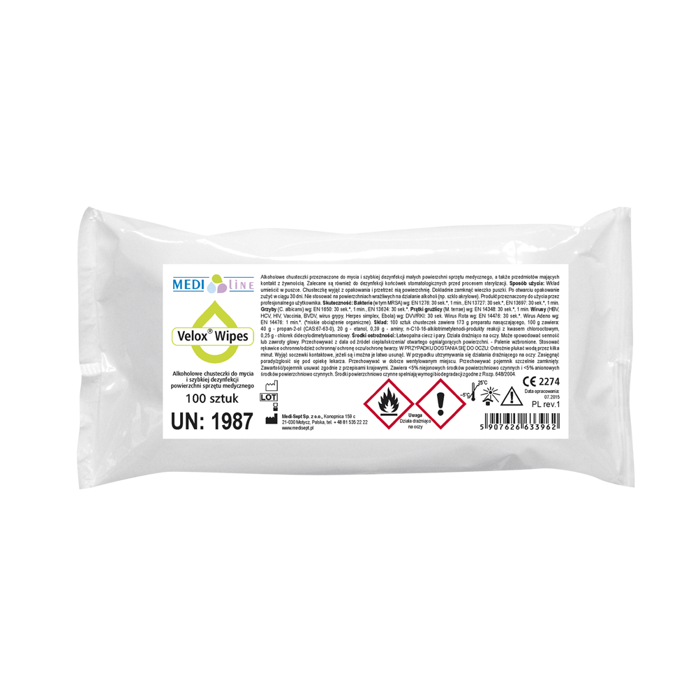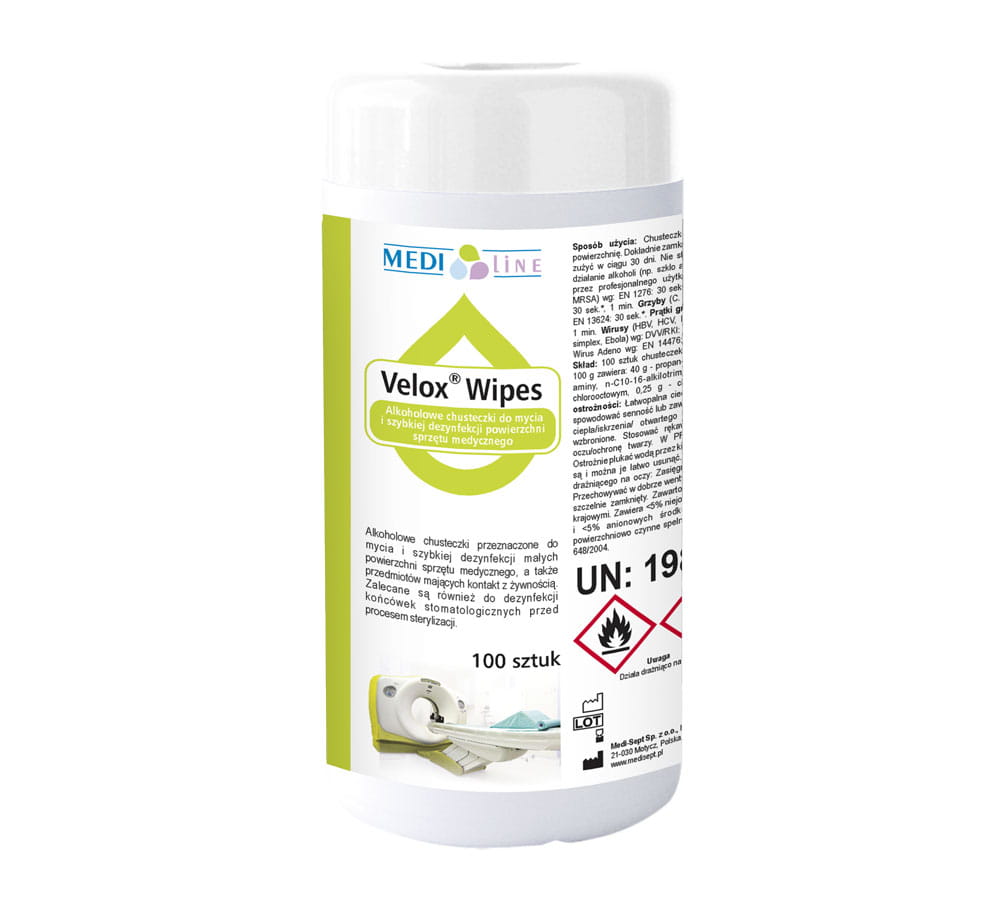 Velox wipes alkoholowe chusteczki do mycia i dezynfekcji małych powierzchni i sprzętu medycznego