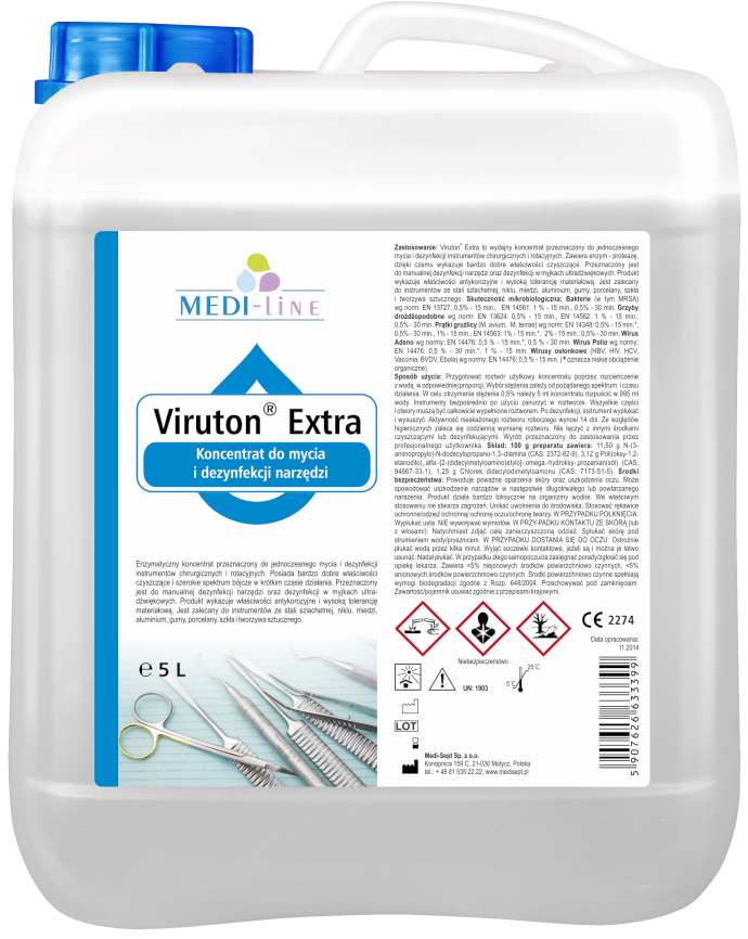 Zastosowanie: Viruton® Extra to wydajny koncentrat przeznaczony do jednoczesnego mycia i dezynfekcji instrumentów chirurgicznych i rotacyjnych.