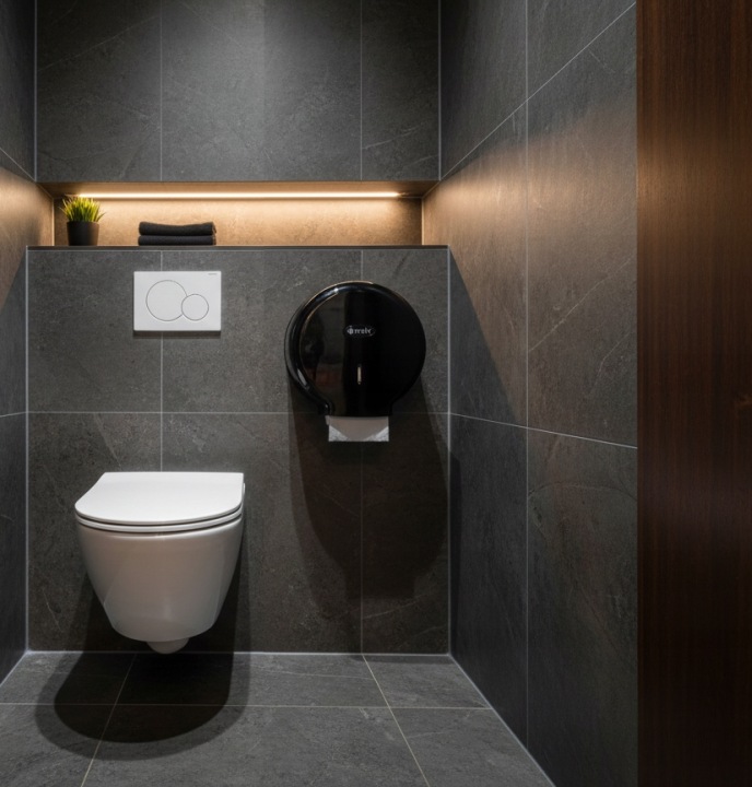 Praktyczny i estetyczny dozownik do papieru toaletowego w standardzie Jumbo to idealne rozwiązanie do toalet publicznych, biur, lokali usługowych oraz miejsc o dużym natężeniu ruchu. Dzięki solidnej konstrukcji i nowoczesnemu wyglądowi doskonale sprawdzi się w każdej łazience.