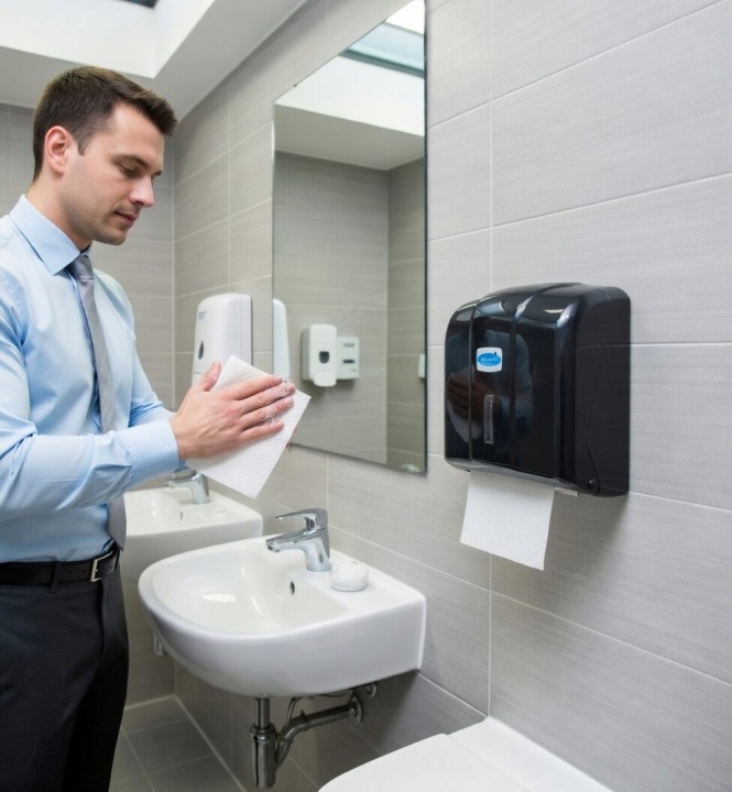 Dzięki zastosowaniu dozownika zwiększasz poziom higieny – użytkownicy dotykają tylko jednego listka ręcznika, co ogranicza rozprzestrzenianie bakterii.