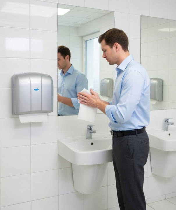 Dzięki zastosowaniu dozownika zwiększasz poziom higieny – użytkownicy dotykają tylko jednego listka ręcznika, co ogranicza rozprzestrzenianie bakterii.