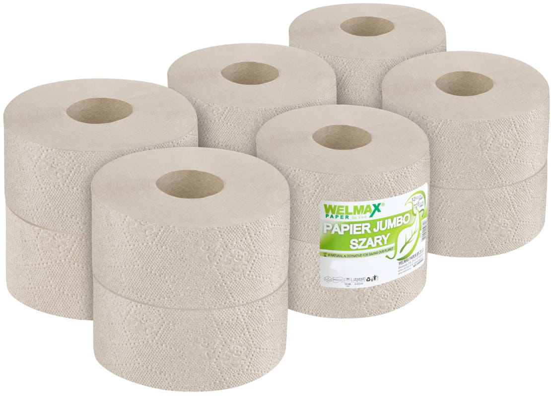 Papier toaletowy JUMBO - seria niezbędnych artykułów codziennego użytku, w naszej ofercie znajdują się zarówno ekologiczne produkty wykonane z najwyższej jakości makulatury w pełni biodegradowalnej jak również te wykonane z miekkiej makulatury. Papiery JUMBO mają zastosowanie głównie w budynkach użyteczności publicznej, punktach gastronomicznych, galeriach handlowych czy w miejscu pracy.